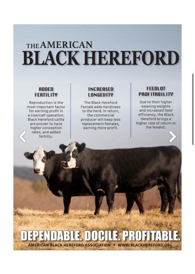 3. Registered Black Hereford Female and a Registered Hereford Bull. *Red Hereford Bulls must be nominated into the ABHA and be a walking herd sire in the AHA with EPD’s to qualify.